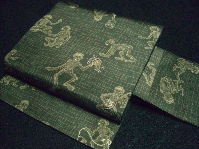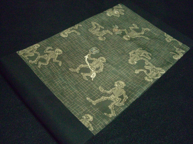 骸骨相撲正絹生地ハギレから仕立てました。