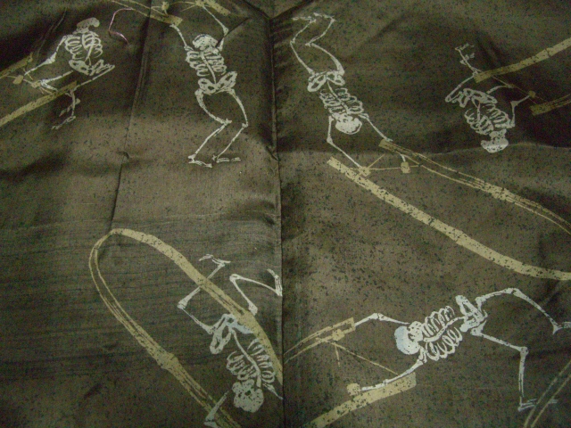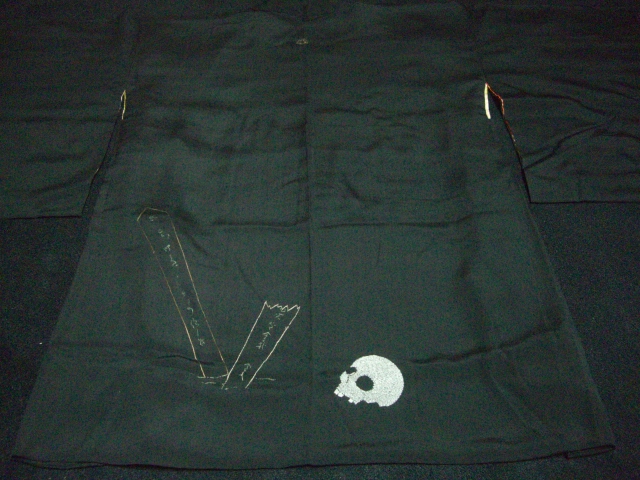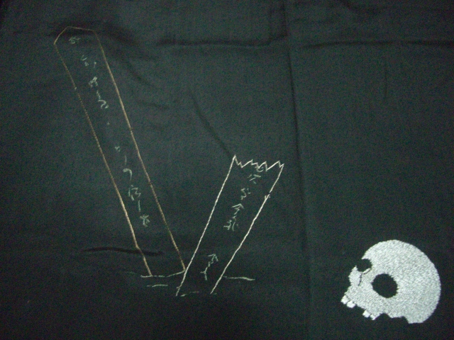 髑髏様で卒塔婆とセットが細かく刺繍されてます。