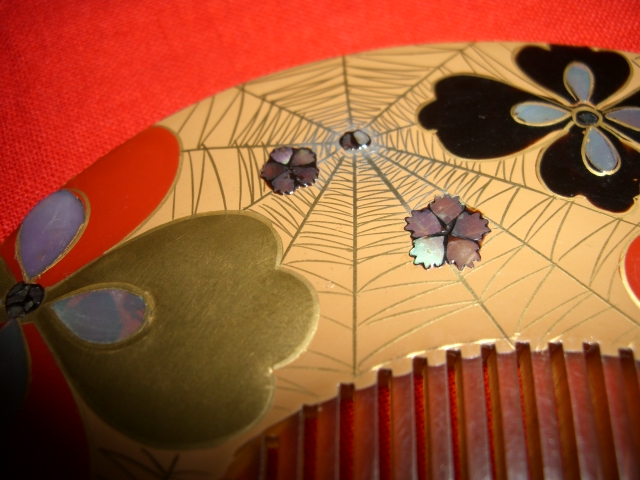 蜘蛛の巣着物に蜘蛛の巣簪。。