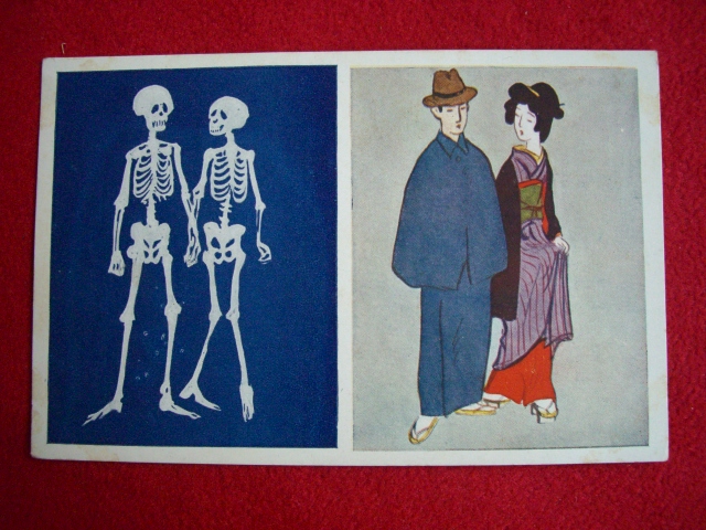 いろんな場面の裏側が覗ける、滑稽な絵葉書です。。
