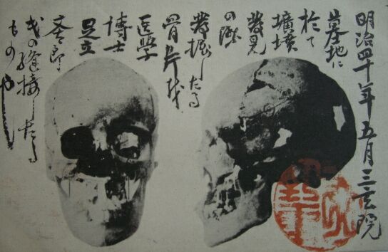 三玄院で発掘された石田三成の頭蓋骨の写真