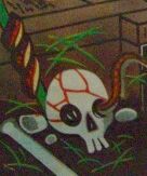 何より、滑稽な髑髏様に注目です!