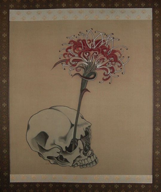 よく見られます。。 「前に髑髏と蝙蝠の掛軸でも説明しましたね、、」